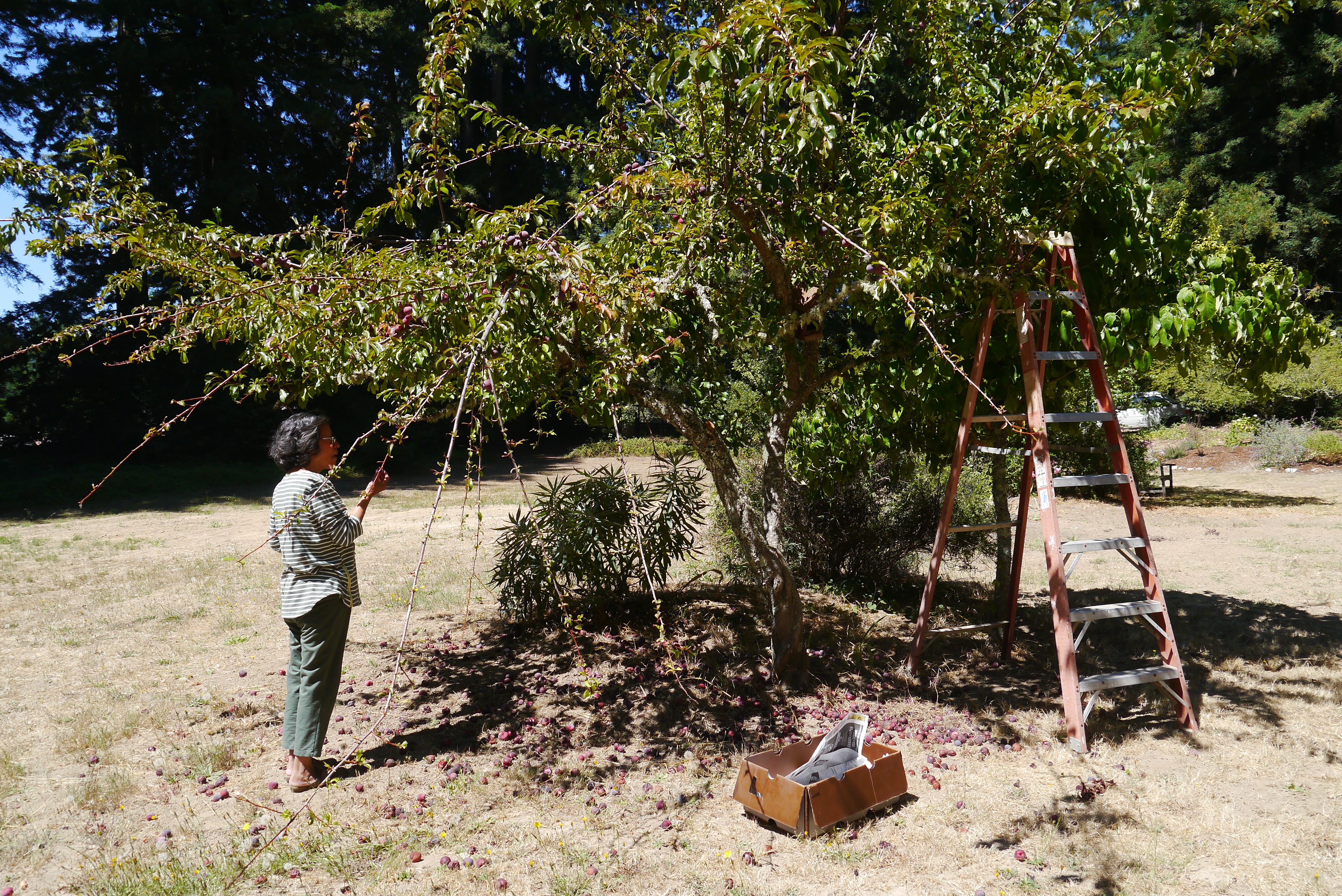 I put a call out on Facebook on any available fruit in Bonny Doon for the barter of one of our tarts. Shortly afterwards I received messages from our neighbors with phone numbers and the types of fruit available. With a ladder and containers for picking, I embarked the following day on the trip to meet these gracious hosts together with my family.