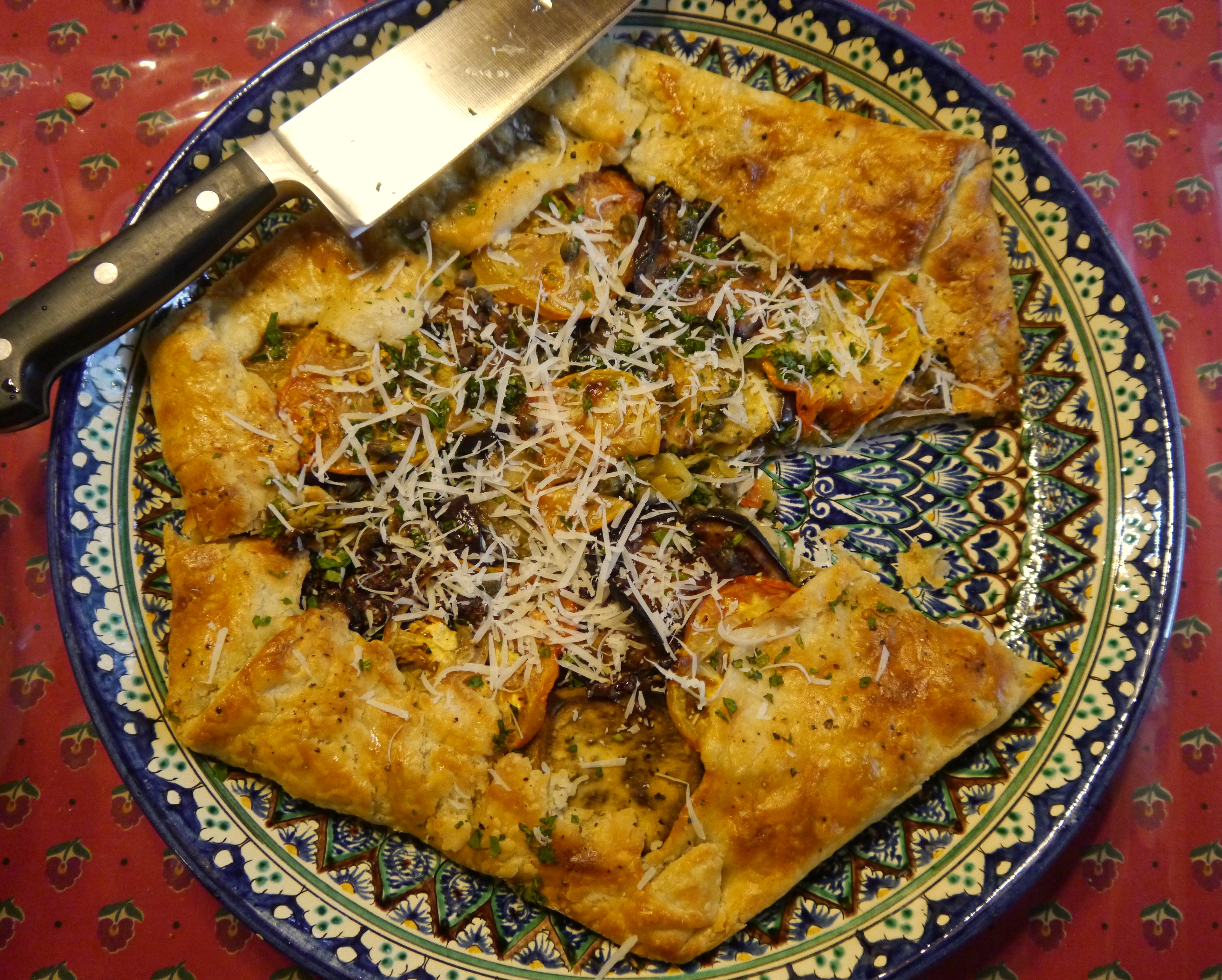 For this week, I decided to make eggplant and leeks tart, one of the traditional French savory pastries. Tarte aux poireaux et à l’aubergine brings out the best flavor of these two often overlooked vegetables. I was excited to see that eggplants started coming into the farmers markets. Plus, I was inspired by the beautiful nutritious leeks that the Live Earth Farm was selling, and, voilà, here is the result. Bon appétit!